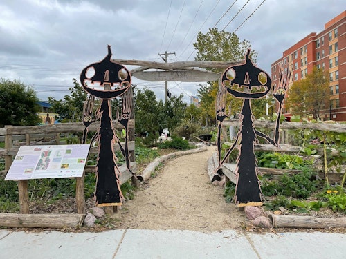 Since 2009, El Paseo Community Garden (founded as Growing Station) has been fostering community and wellness for Pilsen residents through stewardship, conservation, placemaking, partnerships, programming, and community gardening. The garden is one of many NeighborSpace protected and community managed spaces in Chicago, with over an acre of equitable greenspace maintained by volunteers and donations. The garden is a converted brownfield site and sits along a path with a native prairie and permaculture food forest on one side and raised beds and an apiary on the other. Gardening is offered through private allotment beds or collective beds. Collective beds eliminate waiting lists for allotment beds and allow anyone to get involved. Free food beds are included on the perimeter of the collective beds for visitors. The garden plans to add a dog run, nature play area for kids, community stage, fitness area, and several more gathering spaces and plants to their half acre expansion within the next few years as funding is secured.