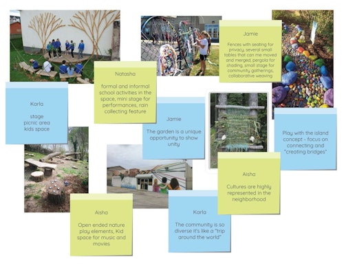 In the spring of 2018, residents of the Island neighborhood began working on beautifying the vacant lot . After various community cleaning days with students and parents , the neighbors began activating the space by hosting block club meetings, movie nights, CAPS meetings, and holiday celebrations. The lot expands on the beautification efforts from the community to create an oasis for groups of different ages and abilities.